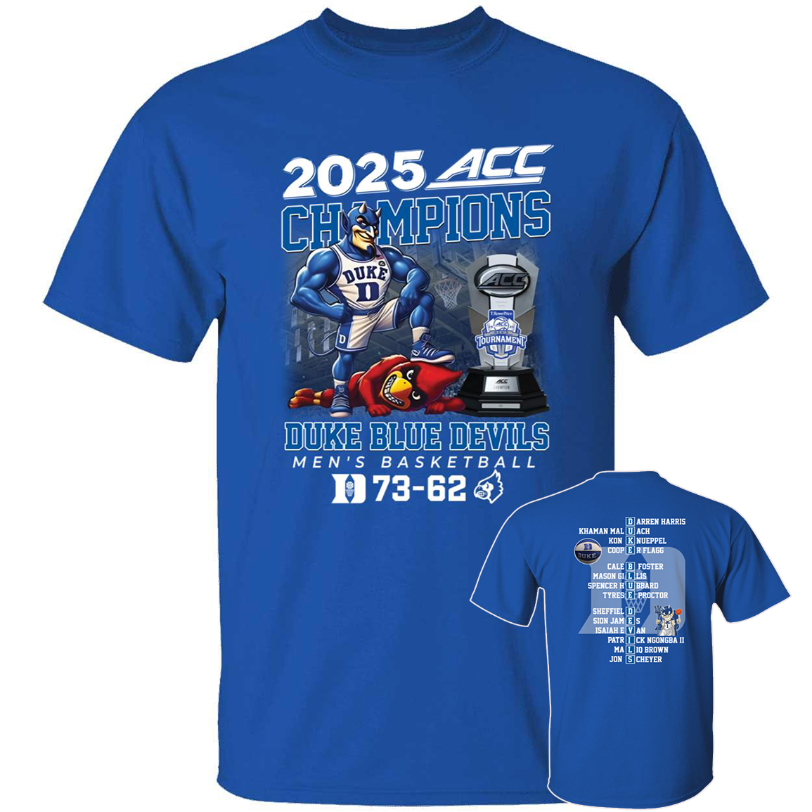 [Front + Back] 2025 Acc Champions Duke Blue Devils 73 Cardinals 62 Premium SS T-Shirt