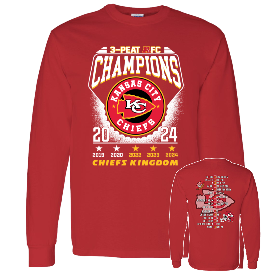 [Front + Back] 3-peat AFC Champions Chiefs Kingdom Shirt