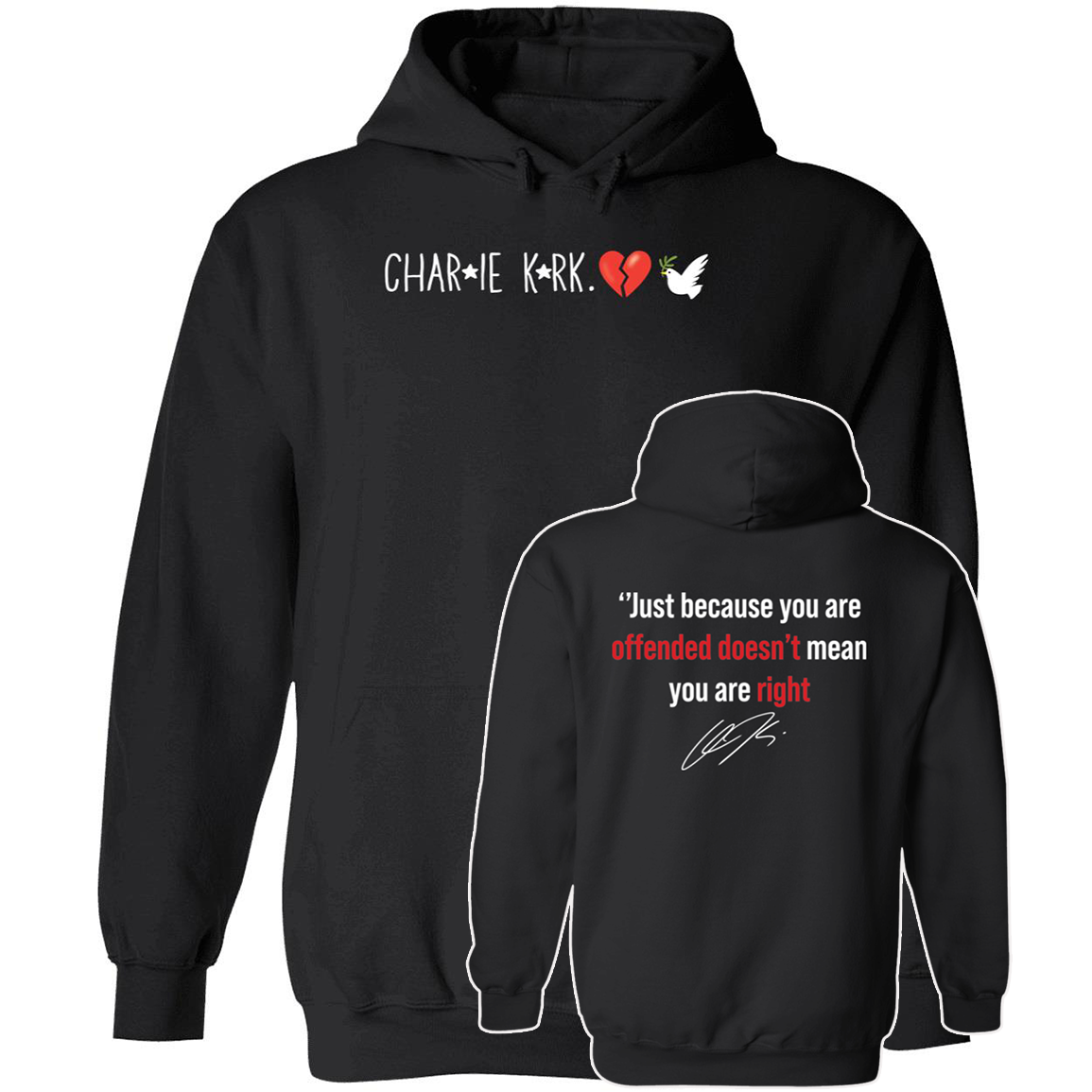 [Front + Back] Charlie Kirk Just Because You Are Offended Doesn’t Mean You Are Right Sweatshirt