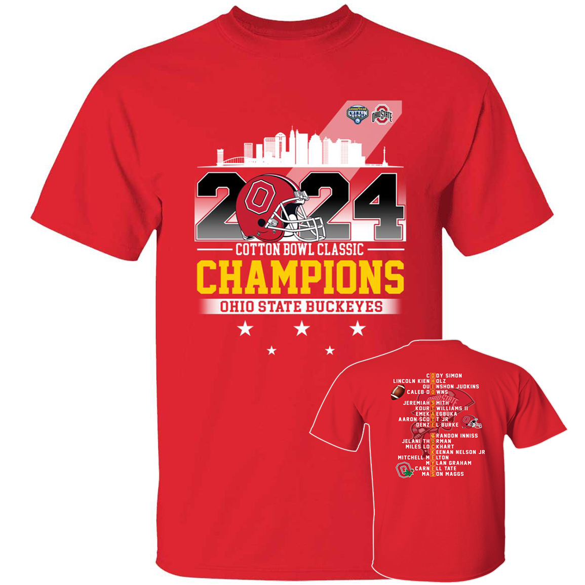 [Front + Back] Ohio State Buckeyes 2024 Cotton Bowl Classic Champions Premium SS T-Shirt