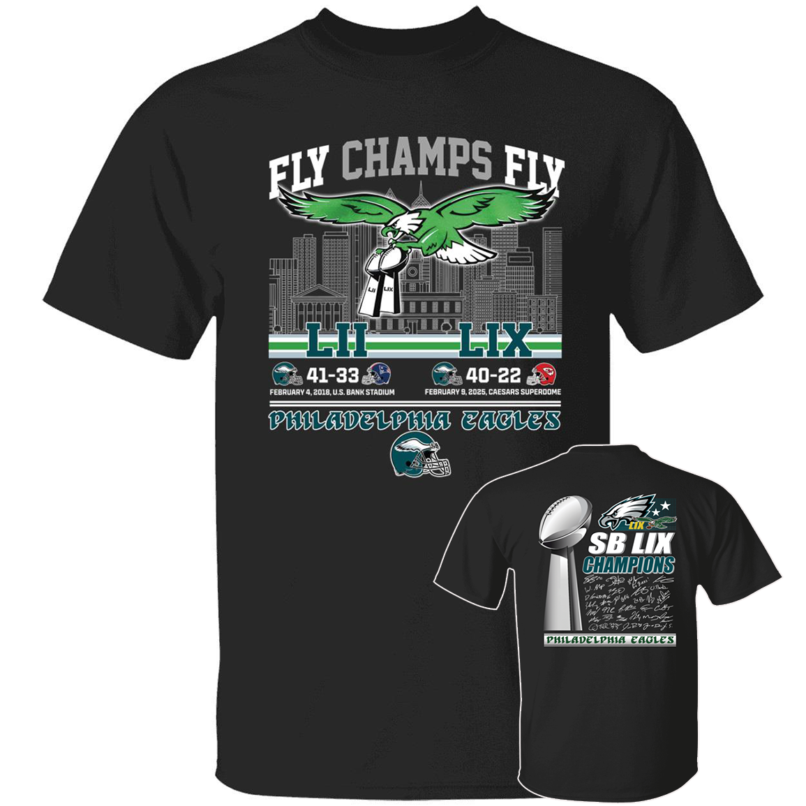 [Front + Back] Philadelphia Eagles Fly Champs Fly SB Lix Champions Long Sleeve Shirt